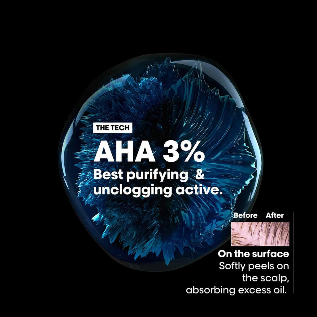 The L’Oréal Professionnel Scalp Advanced Anti-Oiliness Shampoo is a professional cleansing solution for oily scalps and greasy roots. Powered with 3% AHA (Alpha Hydroxy Acid), it gently exfoliates, purifies, and balances scalp oil production while leaving hair light, fresh, and clean for longer.