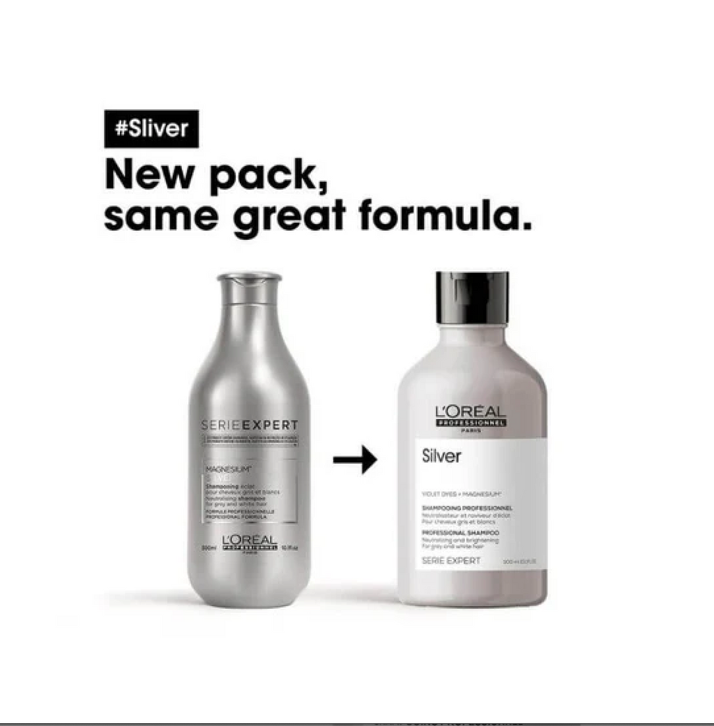 L’Oréal Professionnel Série Expert Silver Shampoo (300ml) is a professional toning shampoo specially designed for grey, white, and light blonde hair. Infused with violet micro-pigments, it neutralizes unwanted yellow and brassy tones while enhancing brightness and shine. The shampoo gently cleanses while leaving hair soft, smooth, and radiant.